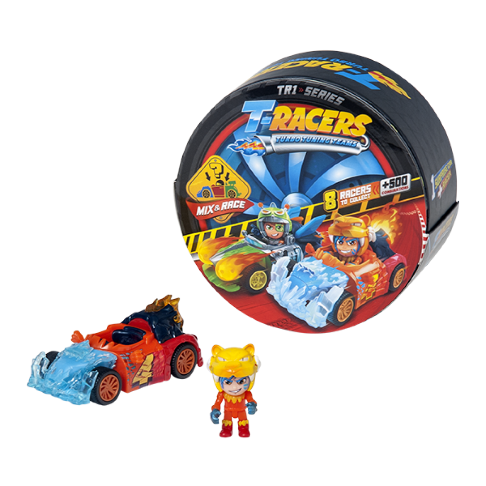 T-Racers sunt mașinuțele de curse perfecte pentru orice copil! Ambalajul oferă o experiență de unboxing de neuitat: deschide roata Turbo pentru a descoperi pachetele care ascund părțile vehiculului tău! Oare ce șofer se ascunde înăuntru? Sunt 8 piloți de colecționat! Pentru a-ți asambla mașina, deschide cele 5 plicuri surpriză din interiorul fiecărei roți Turbo. Fiecare roată conține: 1 x parte din față a mașinii, 1 x cabină a pilotului, 1 x parte din spate a mașinii, 4 x roți, 1 x pilot. Orice vehicul poate fi personalizat! Oare îl poți găsi pe ultra rarul X-Racer? Are finisaj auriu și este cel mai rapid și cel mai misterios pilot din întreg Turbo City!